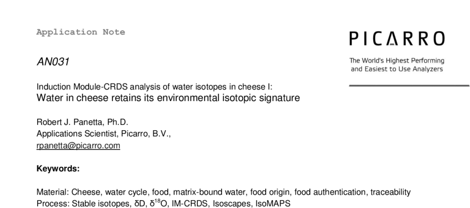 AN031: Induction Module-CRDS analysis of water isotopes in cheese I: Water in cheese retains its environmental isotopic signature