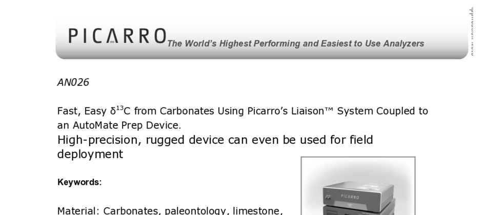 AN026: Fast, Easy δ13C from Carbonates Using Picarro’s Liaison™ System Coupled to an AutoMate Prep Device.
