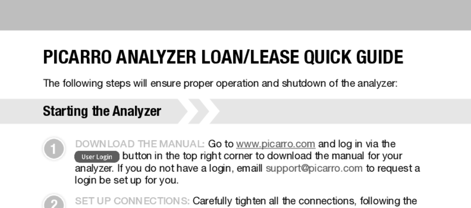 This guide helps users find manuals and product information and correctly start up and shut down their analyzer before shipping it back to Picarro. 下载