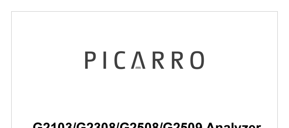 G2103, G2308, G2508, G2509 Analyzer User Manual provides safety, packing, hardware setup, basic operation, GUI functions, file management, calibration, troubleshooting, and maintenance.