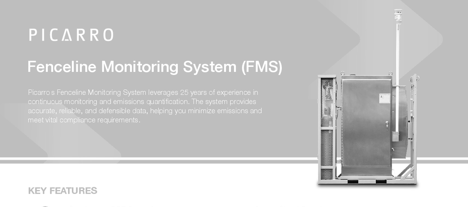 Picarro’s Fenceline Monitoring System (FMS) is a fixed, perimeter-based monitoring system designed to deliver continuous, high-sensitivity measurements of hazardous air pollutants at industrial facility boundaries. Built on proven Cavity Ring-Down Spectroscopy (CRDS) technology, the system provides accurate, defensible data that supports regulatory compliance under the HON, RSR, and CMAS rules. When combined with Picarro’s cloud platform, mobile monitoring units, and expert services, the FMS forms the foundation of an integrated fenceline monitoring solution.